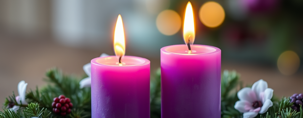 Encendemos dos velas moradas de la corona de adviento y al hacerlo iremos recordando que Jesús es el salvador, el príncipe de la paz que vino a llenar el mundo de su presencia, de su luz y de su amor. Si no tienes una corona, puedes encender cualquier vela.