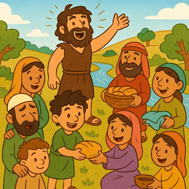 La gente entendió que el mensaje de Juan no era solo para unos pocos, sino para todos. Él les explicó que pronto vendría alguien aún más especial: Jesús, quien bautizaría no solo con agua, sino también con el Espíritu Santo, trayendo amor y esperanza para todos. Desde ese día, muchos niños y adultos decidieron ayudar a los demás, compartir lo que tenían y ser amables. Sabían que preparaban el camino para algo maravilloso que estaba por suceder.